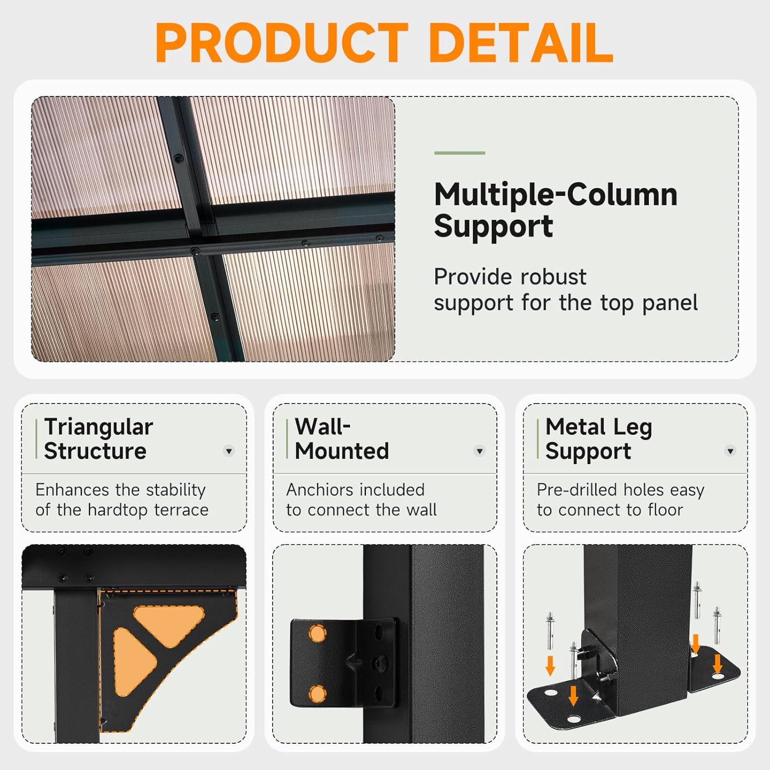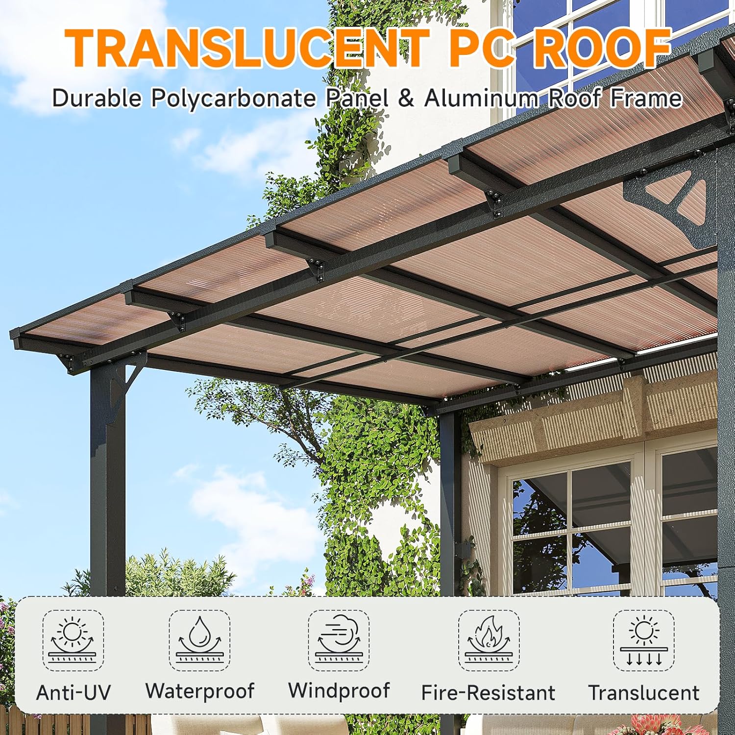 10x20FT Lean to Gazebo, Hardtop Metal Pergola with Polycarbonate Roof, Large Wall Mounted Heavy Duty Awnings, Patio Canopy for Backyard, Deck, Porch