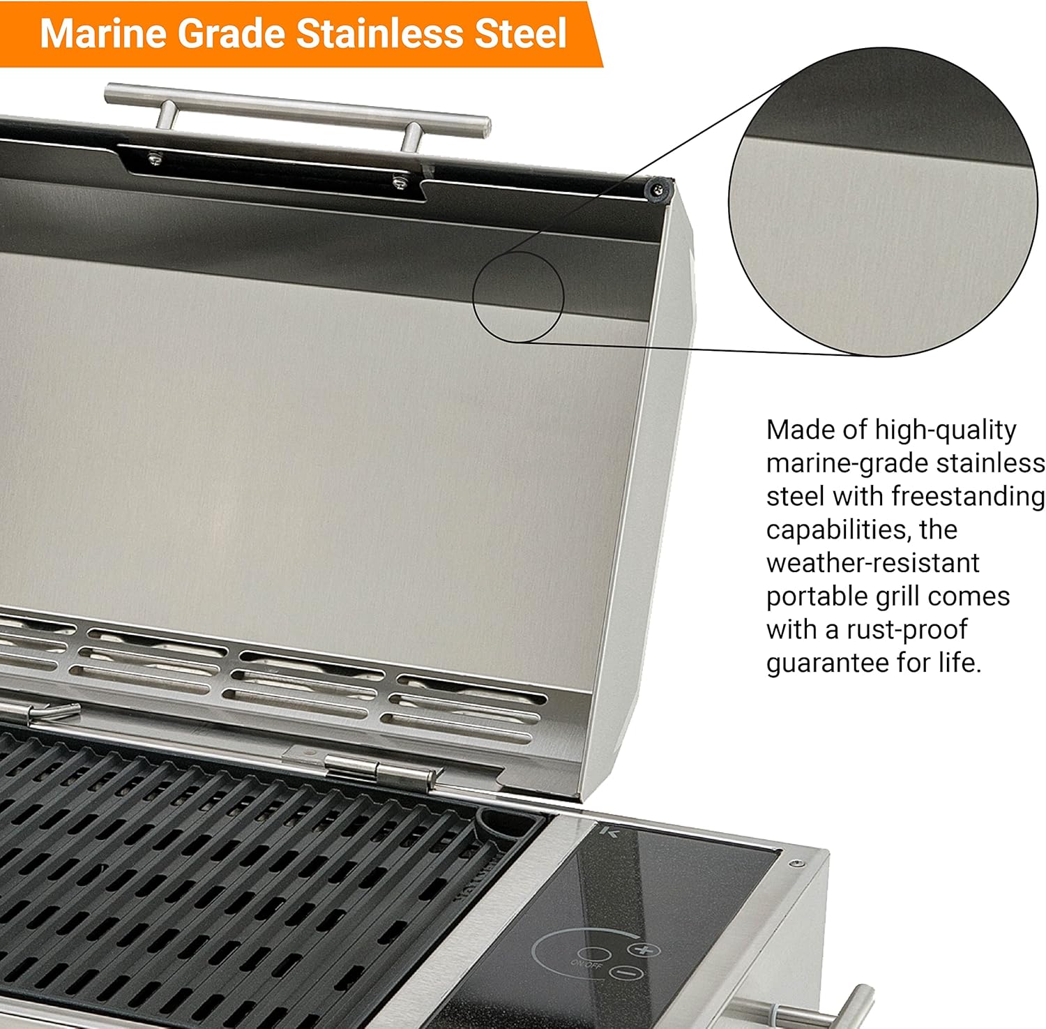Kenyon Frontier Portable Electric Grill, Waterproof Digital Touch Control, UL-Approved For Indoor And Outdoor Use, Stainless Steel, Rust-Proof Grill, Quick Heat Up, Dishwasher Safe, 120V