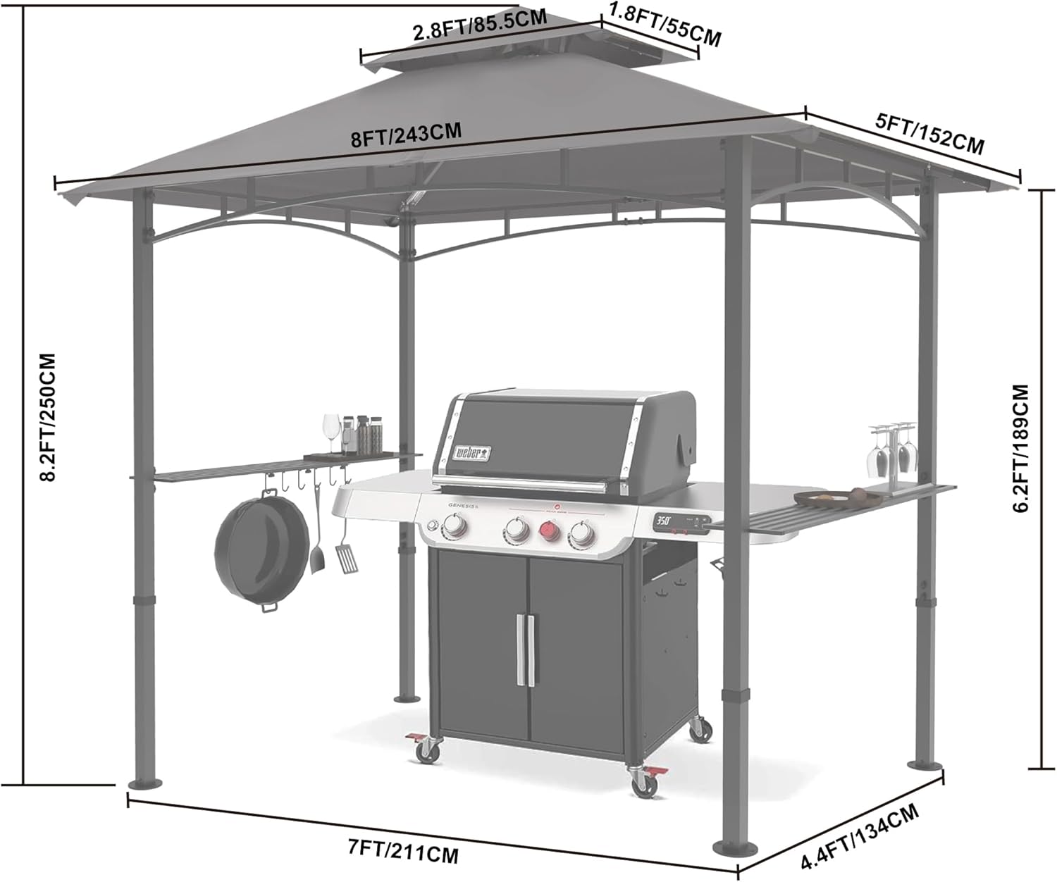 MASTERCANOPY 8 x 5 Grill Gazebo Outdoor BBQ Gazebo Canopy with 2 LED Lights (Gray)