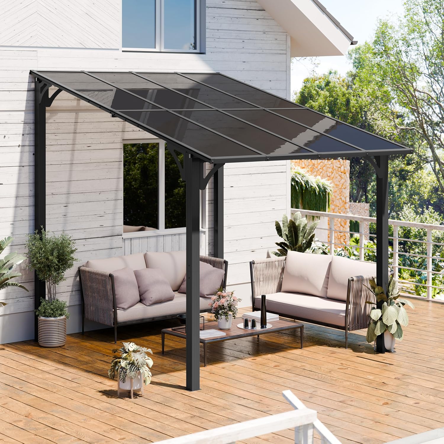 Shintenchi 8’x 10’ Gazebo,Metal Wall-Mounted Gazebo Pergola,Outdoor Patio Lean to Gazebo,Awnings with Sloped Roof,for Backyard,Porch,Deck