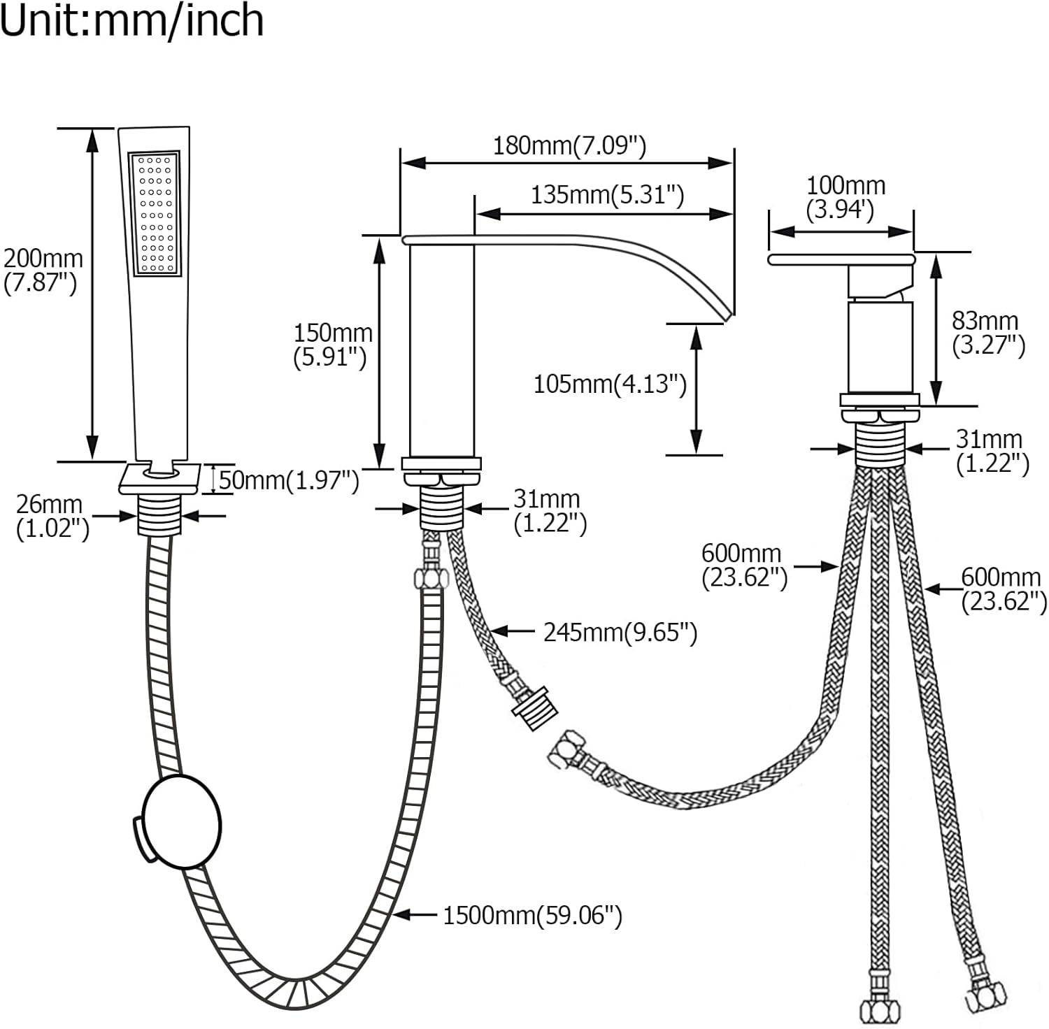 - Switch hand shower or waterfall spout by rotating the square knob. The lever handle is easy to adjust temperature and water flow.